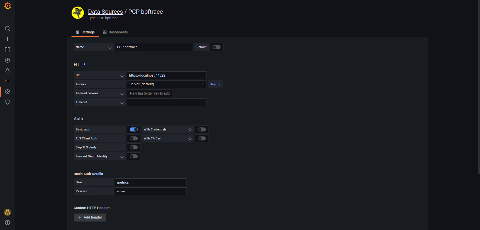 여기서는 metrics라는 사용자 계정을 추가한다. 뒤에서 PCP bpftrace 데이터 소스를 추가할 때 사용한다.